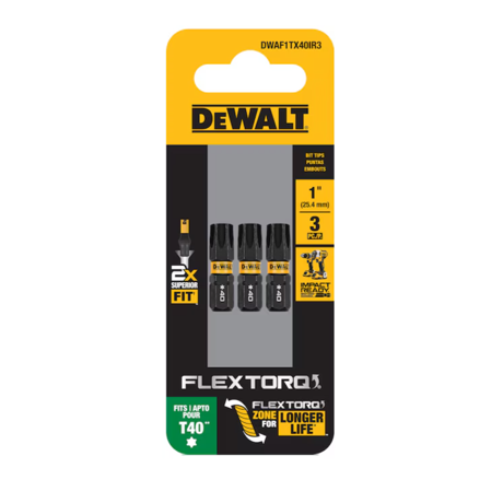 Dewalt Dwaf1tx40ir3 Flextorq 1/4-in X 1-in Torx Impact Driver Bit T40 (3-piece)