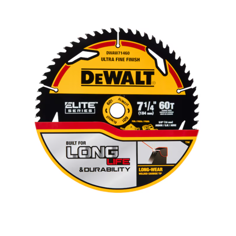 Dewalt Dwaw71460 Elite Series 7-1/4-in 60-tooth Fine Finish Tungsten Carbide-tipped Steel Circular Saw Blade