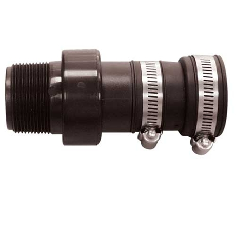 Item has threaded male end 1 1/2" and outflow shoulder end 1 1/4", and includes 1 1/2" shoulder end adapter.